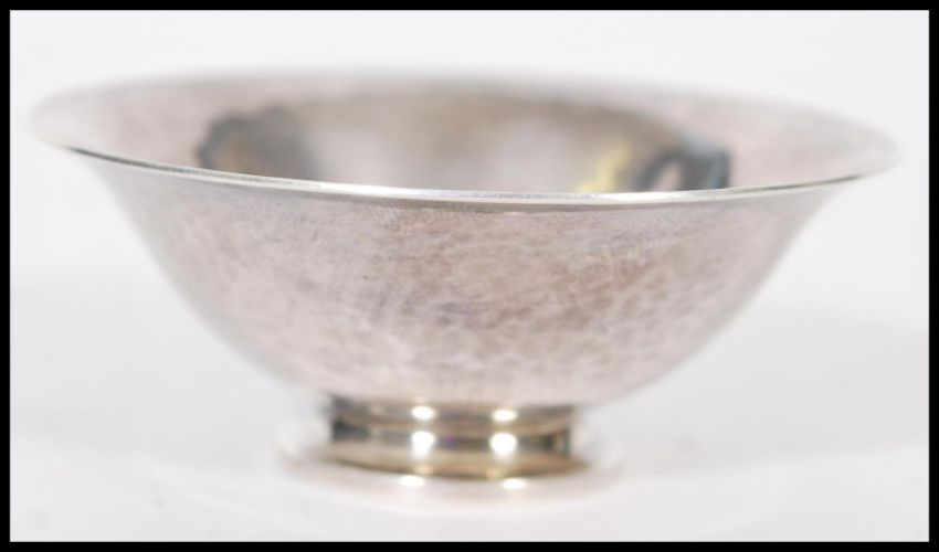 A Danish 20th century Sterling silver salt cellar by Georg Jensen stamped to base for maker with impressed pattern no 575a. Measures 6cms diam / weight 26.7g. 2cm-high 6cm-diameter.