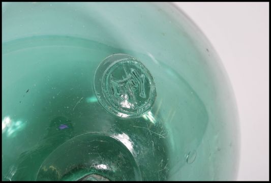 A 20th Century green glass witches ball / Japanese fishing float being of globular form with pontil mark. Measures 30cm-diameter.