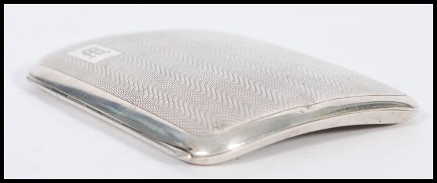 A 1920's silver hallmarked cigarette case with an engine turned exterior. Hallmarked Birmingham 1929. Weight approx 67.7g. 8cm-high 7cm-wide.