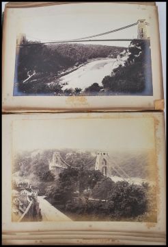 A late 19th Century / early 20th Century local interest photograph album of old Bristol featuring black and white photos of iconic sites including Bristol suspension bridge, the Observatory, the harbour, Clifton, Bristol Cathedral, Temple Meads etc. also with interesting some domestic photographs showing everyday life. 26cm-high 19cm-wide.