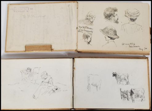 F. M. Minns - A stunning pair of sketch books dating from the late 19th Century, the sketch books containing preliminary sketches and watercolours, contained within Geo. Rowney & Co and Windsor and Newton albums. Many of the sketches with notation. Together with photo copies of most of the sketches and sketches from other albums.