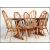 A retro mid 20th century Ercol refectory dining table and chairs being raised on angled tapering legs with elm table top having chamfered edges. Together with a set of matching dining chairs. Measures: 72cm high x 152cm wide x 75cm deep.