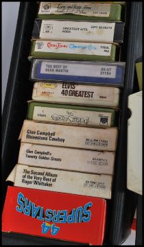 A vintage retro Elizabethan 8 track stereo cassette player LZ 619, together with a collection of 8 track cassettes to include David Bowie, The Drifters, Bachelors, Elvis, Tom Jones, Elton John etc. Measures 18cm- high 26cm-wide 8 track player.