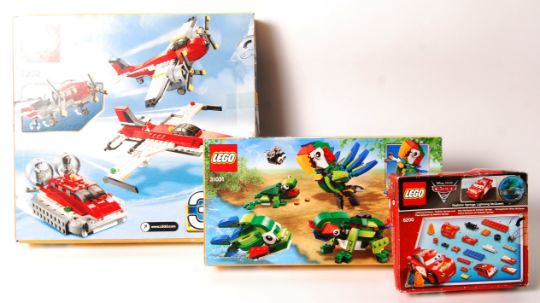 A Lego Creator boxed set No. 31031 ' Rainforest Animals ', 7292 ' Propeller Adventures' and Disney Pixar Cars series 8200 'Lightning McQueen'. Vendor assures us set is 100% complete, with all figures and instructions present (unchecked by us). Within its original box. Resealed by vendor.