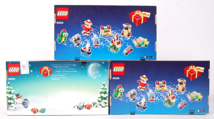 A collection of 3 x Lego Christmas 24 in 1 build up advent sets to include; 2 x No. 40222 and No. 40253. All appear factory sealed and as new.