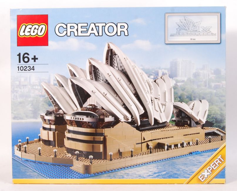 A Lego Creator / Architecture set No. 10234 ' Sydney Opera House '. Vendor assures us set is 100% complete (unchecked by us). Within the original box, with instructions. Rare set.