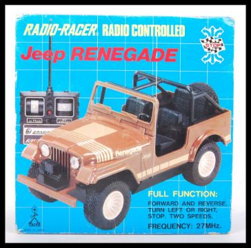 An original vintage Taiyo made Radio Racer RC radio controlled Jeep Renegade car within the original box. Measures; 20cm.
