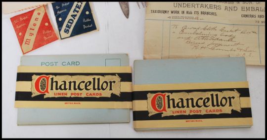A selection of early / mid 20th century ephemera items to include a selection of V Mail envelopes, a letter dated 1945 from a WWII officer, a selection of 1940's condoms in original packaging, a selection of Chancellor blank linen postcards, and a selection of military silver plated cutlery to include a naval fork with an anchor crest, a Walker and Hall fork, a pickle fork, and a military knife and fork.