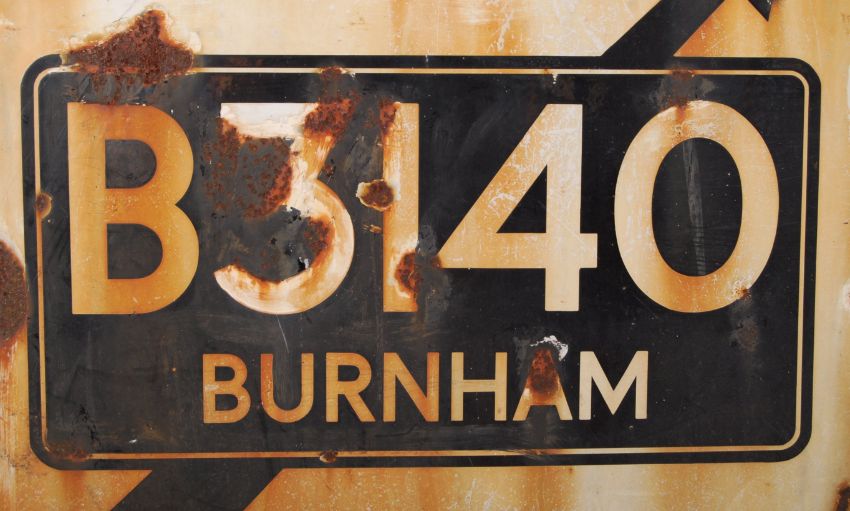 A rare original mid-century 1950's / 1960's enamel RAC road sign for Burnham On Sea . RAC pictorial emblem to top, with notation for ' B3140 Burnham ' to centre. Squared sign, with triangular top section. A rare survivor. Measures approx; 81cm tall x 69cm wide