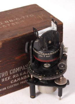 A rare WWII Second World War ' Astro Compass Mk II ' navigational aircraft compass. Within its original wooden box, stamped with Ref. No. 6A / 1174 CANADA. Some accessories / parts within.