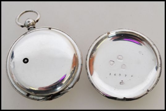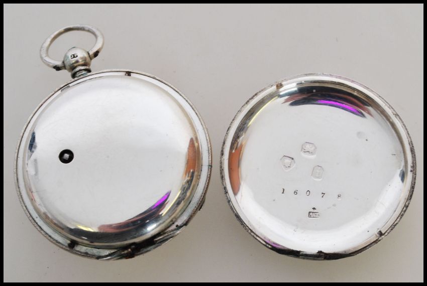 A 19th century Victorian silver hallmarked pocket watch having a fusee movement. The white enamel face having a Roman numeral chapter ring, faceted hands and subsidiary seconds dial to six. Hallmarked for London 1874. Movement stamped 338 strand. Weighs 94 grams. Face measures 45mm.