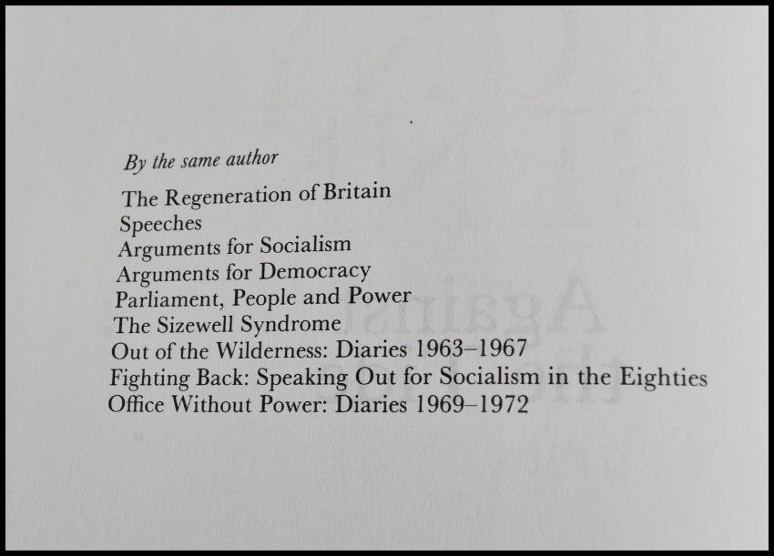 A signed edition of Against the Tide Diaries 1973-76 by Tony Benn published by Hutchinson 1989 concerning 1970's politics, hard backed with a dust sleeve. Measures 24cm-high 16cm-wide.