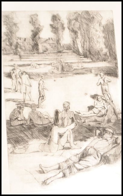 ARTISTS RE-SALE RIGHT. Buyers of the re-sold art of living artists will be charged the royalty where applicable. Currently this is 4% on any item sold at 1000 Euros or over, diminishing about 50,000 Euros. VAT is not applicable. Further details can be obtained from our office.