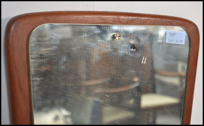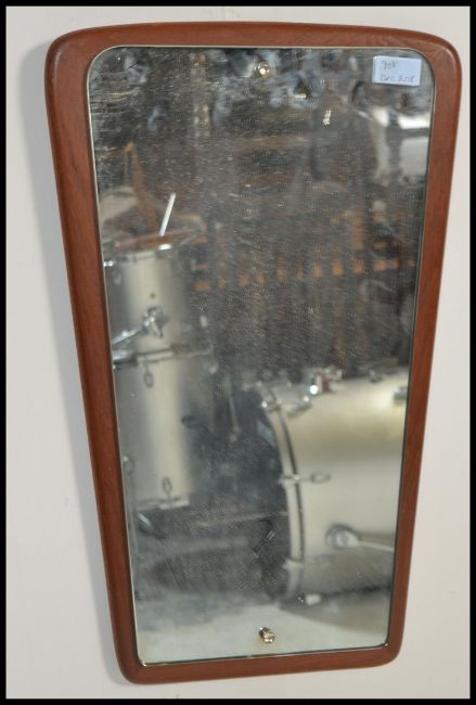 A vintage 20th century retro teak wood frameless atomic / sputnik style wall mirror of obtuse form dating to the 1970's.