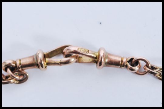 A hallmarked 9ct gold Albert pocket watch chain having T bar with dual clasps. Weighs 9.5 grams.