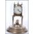 Mid 20th Century brass anniversary or torsion clock having a white face with arabic numerals to the chapter ring dial four-ball pendulum on with circular stepped base beneath a glass dome. Marked 1644 under the face.