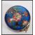 A 19th century Chinese cloisonne pill pot box on pendant bale hoop. Deep blue ground with decoration of flowers. 1.5cm high 3cm diameter.