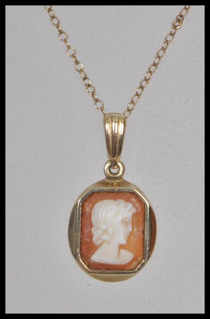 A 20th century 9ct gold hallmarked ladies cameo pendant and necklace chain, weight 2.0g  length of chain 44cms
