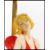 An Italian Capodimonte style ceramic hand painted novelty table lamp depicting Marilyn in a red dress, her dress blowing in the iconic pose, on a wooden base, with a retro fringed lampshade to the top. 72cm high.