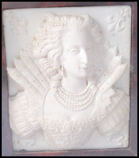 A pair of 18th century Ivory Dieppe French carved panels of Louis XVI and Marie Antoniette being set into later tortoiseshell frames.