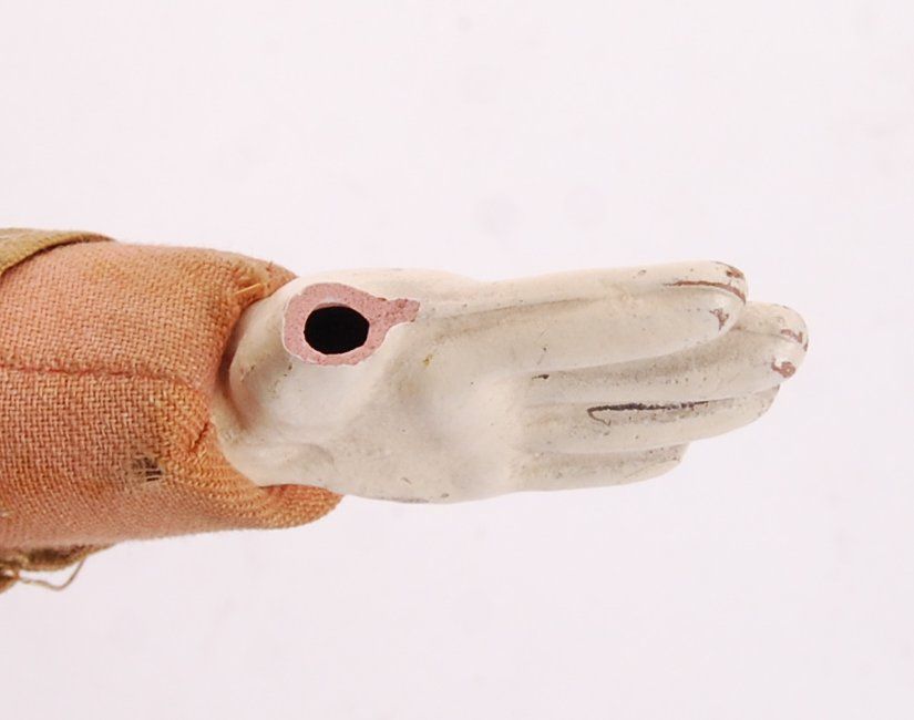 A rare WWI First World War style children's / child's ceramic clown doll, in the form of a WWI Tommy. No makers marks, but possibly Dutch in origin. Clown face, with WWI uniform. Cloth body. Missing one thumb. Measures approx; 33cm tall. Rare.