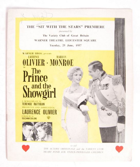 Noel Coward - (1899-1973) English composer, actor, singer and entertainer - A rare Variety Club Of Great Britain ' Sit With The Stars Premiere ' brochure for ' The Prince & The Showgirl ' (starring Marilyn Monroe & Laurence Olivier). Autographed in ink to the top front cover by Noel Coward. Undedicated signature. Rare.