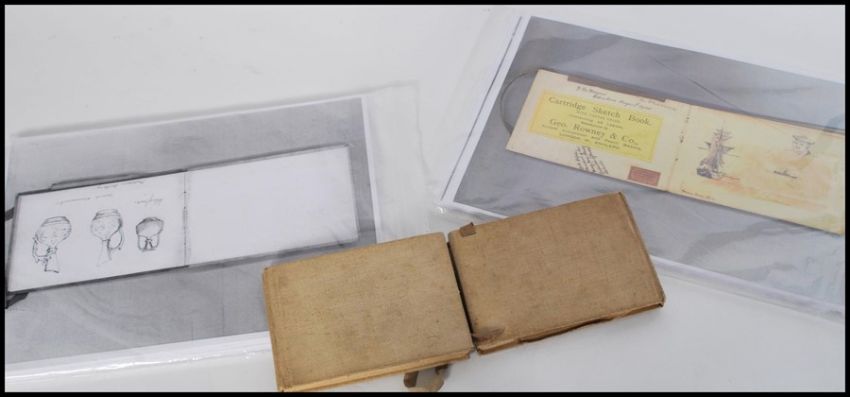 F. M. Minns - A stunning pair of sketch books dating from the late 19th Century, the sketch books containing preliminary sketches and watercolours, contained within Geo. Rowney & Co and Windsor and Newton albums. Many of the sketches with notation. Together with photo copies of most of the sketches and sketches from other albums.