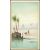 An early 20th Century watercolour painting depicting a North African scene of two nomadic men with camels at an oasis watering hole, framed and glazed. Measure:  28cm high x 17cm wide.