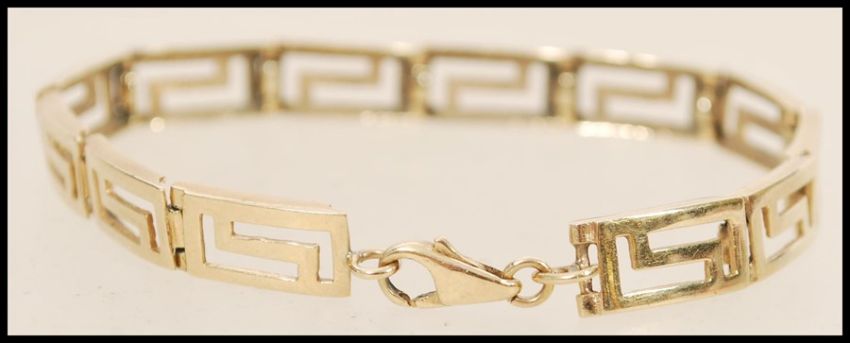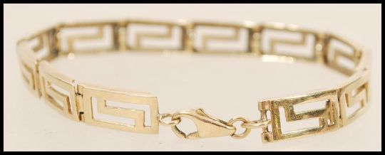 A 9ct gold spacer bracelet having pierced greek key detailing. Weight 12.2g.