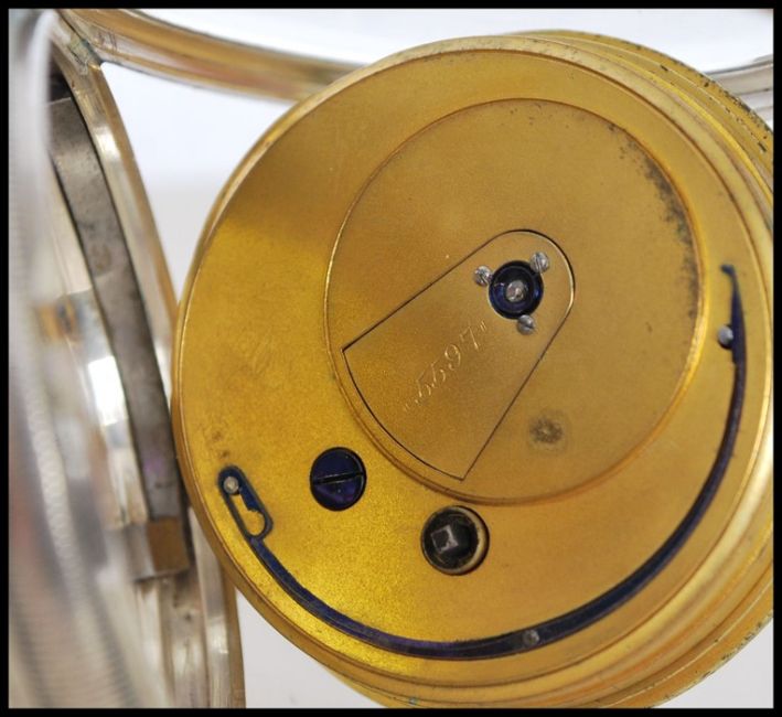A 19th century Victorian silver hallmarked full hunter pocket watch having a fusee movement. The white enamel face having a Roman numeral chapter ring, faceted hands and subsidiary seconds dial to six. Hallmarked for Chester . Weighs 112.3 grams. Face measures 45mm.