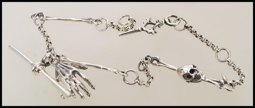 A silver albert watch chain with skeleton details. Weight 21.7g.