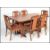 A 1970's retro teak wood dining room suite comprising a set of 6 dining chairs and an extending dining table. The table being raised on angular legs with fold out leaf. Measure:  74cm high x 159cm wide x 98cm deep.