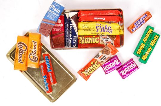 J. S. Fry & Sons - 250th anniversary Bristol Somerdale - An unusual and rare original 1970's Chocolate selection tin with believed complete contents all unopened and still in there original wrappers to include; 2 x Crunchie, 2 x Cadbury's Flake, 2 x Cadbury's Fudge, 2 x Fry's Chocolate Cream, Cadbury's Double Decker, Fry's Plain Sandwich, Fry's milk Sandwich, 2 x Cadbury's Picnic, 2 x Fry's Turkish Delight, 2 x Murray Mints and 2 x Cadbury's Caramel.