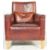Heals Furniture - An original retro contemporary lounge / club chair / armchair upholstered in an Italian red leather and raised on short beech stub legs. The arms being squared with a tall backrest and deep seating similar to that of Gerard Van Den Berg. Label to the back stitched into the seam. Measures; 90cm x 68cm x 84cm.
