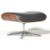 After Charles & Ray Eames - Plycraft - A contemporary lounge chair ottoman comprising of Palisander plywood shell with black aniline button backed leather cushion raised on a aluminium four point base.
