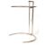 After Eileen Gray - E1027 - A contemporary chrome occasional / side table of tubular chromed metal construction with round glass top raised on a stem with a partial circle foot. The chain and pin is adjusting the height and keeping it in place. Measures; 72cm tall.