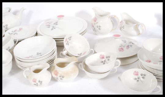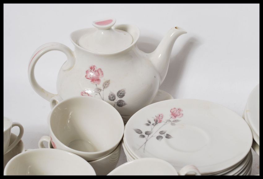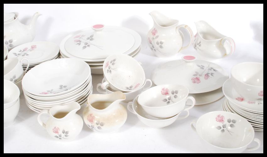 A Royal Doulton English translucent China dinner and tea service in the Pillar Rose pattern. Complete with the cups, saucers, plates etc all being stamped to the rear.