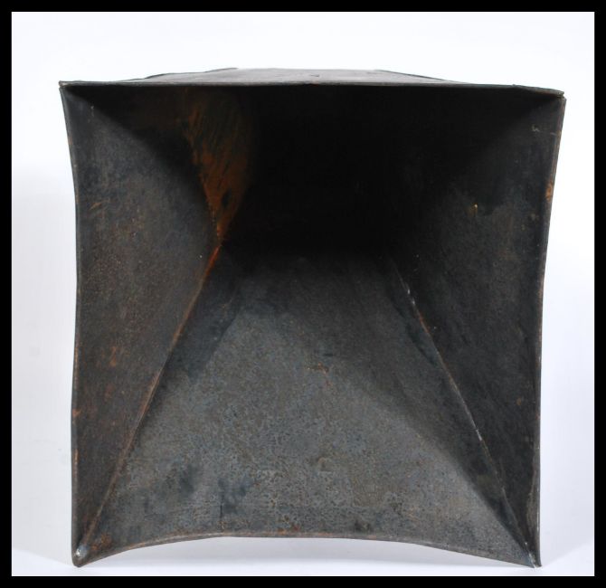 A vintage retro 20th Century Industrial reclaimed tannoy speaker horn for gramophone morning glory horn shape. Fluted sheet metal construction with shaped angular end. Perfect for lamp conversion.