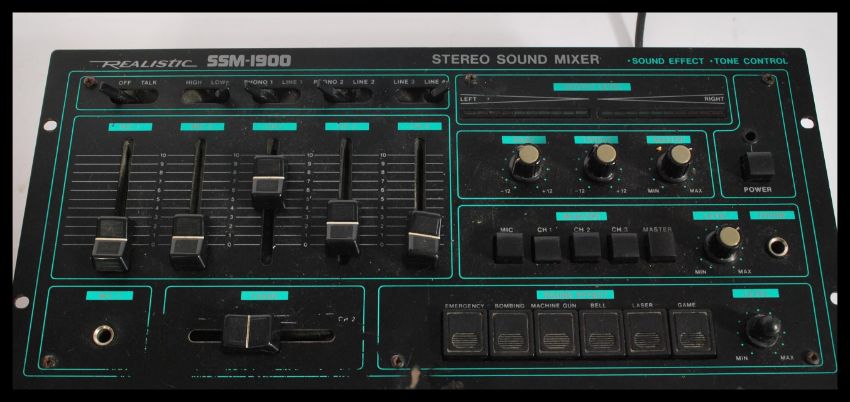 A vintage retro 20th Century teak cased amplifier by Hi Fidelity together with a Realistic 1900 mixer.