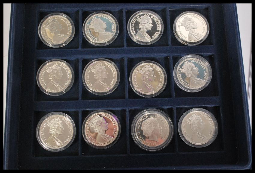 Congo Democratic Republic Silver Proof set of eleven 10 Franc ' Heroes of 1966 ' ( England's World Cup Winner Team ) coin by Westminster together with 12 x silver proof £5 coins England 66 silver coin collection, all coins in capsules within presentation box.