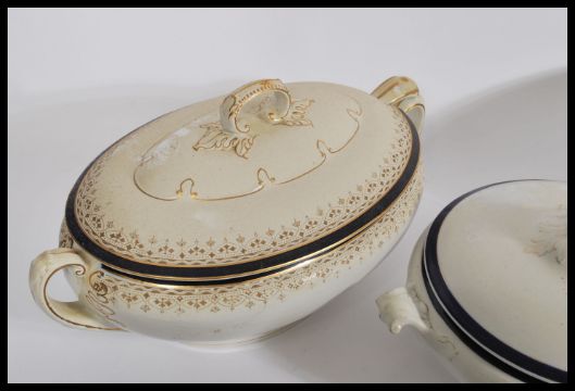 An extensive Hancock & Sons blue and white dinner service ' Corona ware ' to include dinner plates, tureens, cups, saucers etc