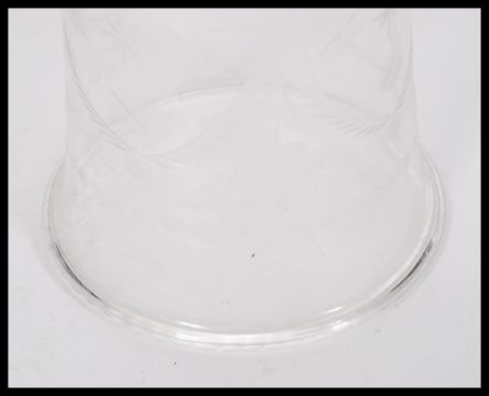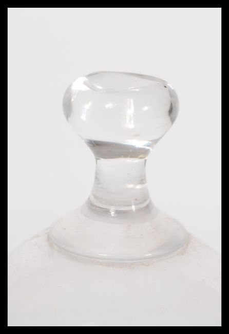 A 19th century Regency acid etched bell cloche with knop top and all over decoration. Measures 23cm high 14cm diameter.