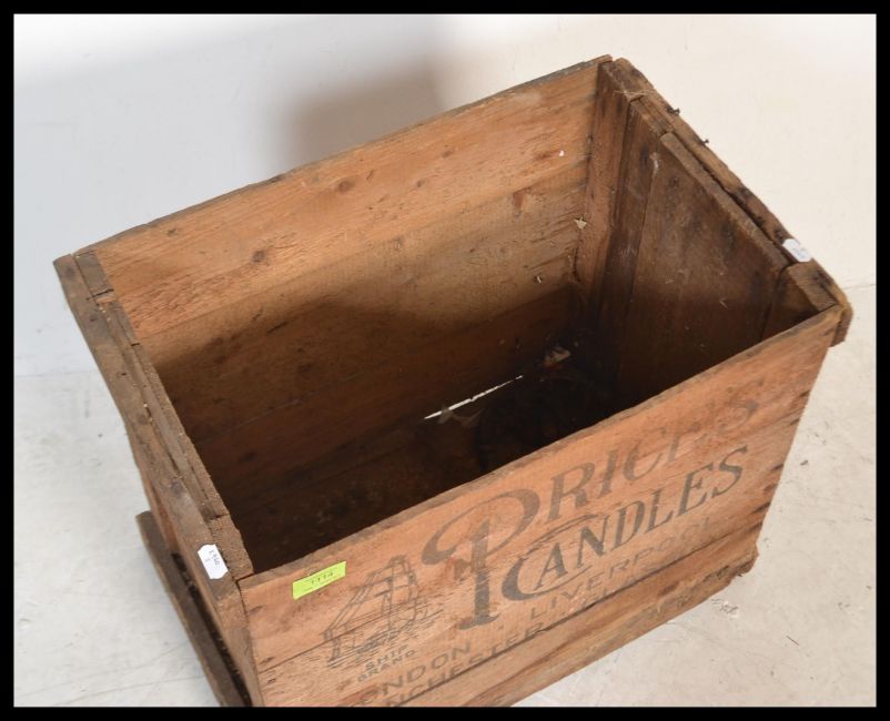 A vintage mid 20th Century shipping / transportation crate for Prices Candles, advertising notation to the side reading Prices Candles, Ship Brand, London, Liverpool, Manchester, Glasgow.