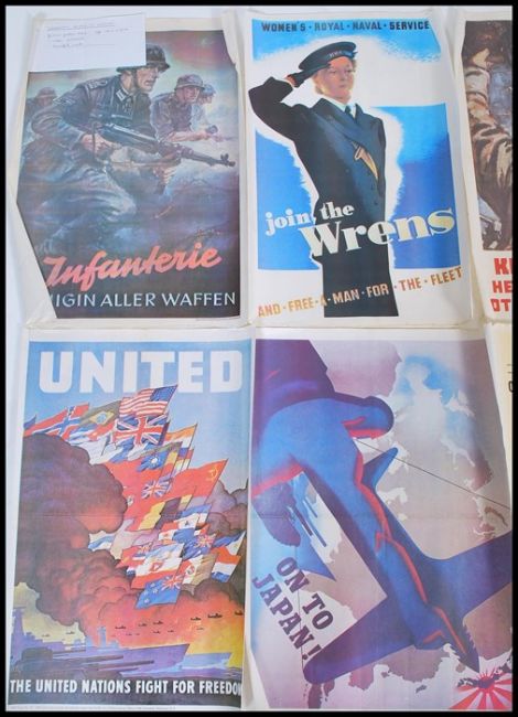 A collection of vintage 20th century reproduction WWII Second World War War Time propaganda posters. 58cm high 41cm wide average size.