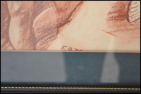 A vintage early 20th century pastel study of a nude lady portrait and reclined. Framed and glazed signed by artist. Measures:  32cm high x 48cm wide.