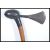 A vintage 20th Century African tribal hand axe with a shaped blade and turned stem with ebonised sections and bulbous top, the cast head decorated with geometric decoration.
