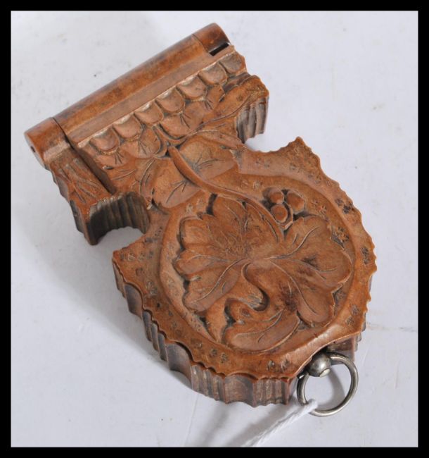 A vintage early 20th Century fine silver pocket watch having a white enamel face with Roman numeral chapter ring and faceted hands. Housed within a carved wooden case.