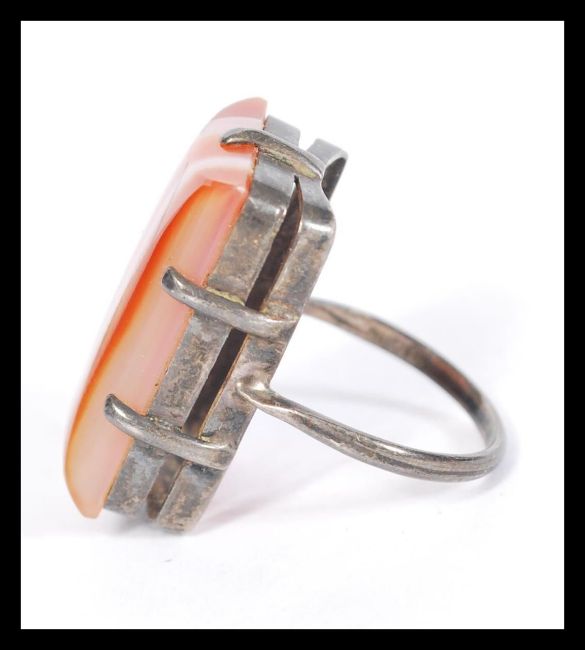 A vintage white metal and agate cabochon necklace and an agate ring marked silver together with a vintage turquoise art glass bead necklace. Ring size Q. Necklaces measures, agate approx 24 inches, glass 40 inches.
