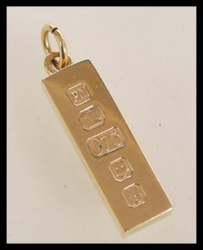 A hallmarked 9ct gold ingot pendant. Hallmarked London 1976. Total weight approx 31.3g.