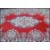 A Persian Islamic carpet rug on a red ground having one blue and cream floral medallion to the centre with a border of geometric patterning and floral sprays.